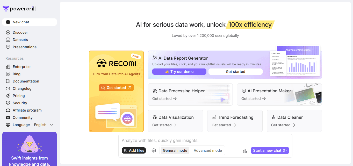 PowerDrill focuses on helping business teams visualize trends and uncover insights quickly. Instead of manually building pivot tables or charts, Powerdrill suggests them based on your data.